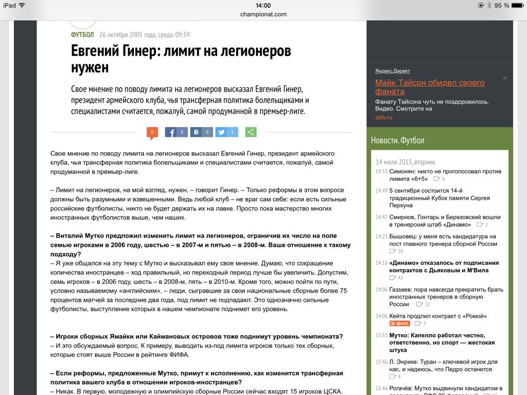 Симонян: – Почему приняли такой лимит? Бывают форс-мажорные обстоятельства – например, Миллер сделал заявление. Руководителей клубов убедили, что этот лимит более целесообразен. Это просто пиздец. Мож, Царь в ноябре даст им всем по мордасам. Я хрен его знает, что должно произойти, чтоб разум вернулся в наш футбол Добрый день уважаемые! Исходя из своего прошлого опыта работы в государственных органах (а он равен 12 годам) могу высказать следующее очень субъективное мнение. Для государства сегодня вопрос развития футбола не стоит вообще. Прекрасно они понимают, что любое ограничение вредит, но также они прекрасно понимают, что отмена лимита в краткосрочной перспективе не даст результата - отмена лимита начнет работать больше чем через три года. Нынешних восемнадцатилетних уже не исправишь. Поэтому в целях более менее конкурентноспособной команды в 2018 году - нужно наиграть 25 - 30 человек с постоянной практикой. Не надо будет удивляться если лимит 6+5 еще и по линиям определят - обязательно 2 в защите, 2 в полузащите, один в атаке. А вот после 2018 лимит смягчат или отменят. Когда Никита Павлович говорит, что лимит ужесточили после заявления Миллера - ну это ерунда мягко говоря. Что Миллер, что Мудко - говорящие головы. Это глас государства - а оно будучи не дурой, когда припрет просчитывает все.